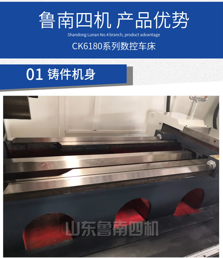 機(jī)床采用高強(qiáng)度鑄鐵,添加了銅及鉻特殊材料,床身導(dǎo)軌淬火深度達(dá)到3mm,有效的提高了機(jī)床耐磨性及穩(wěn)定性。