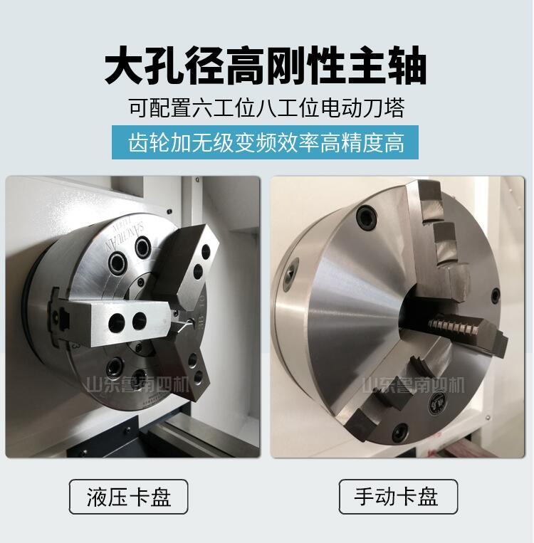 機床配置國內知名品牌立式四工位數控刀架,刀架具有定位精度高,強度高,抗震性能好等特點。