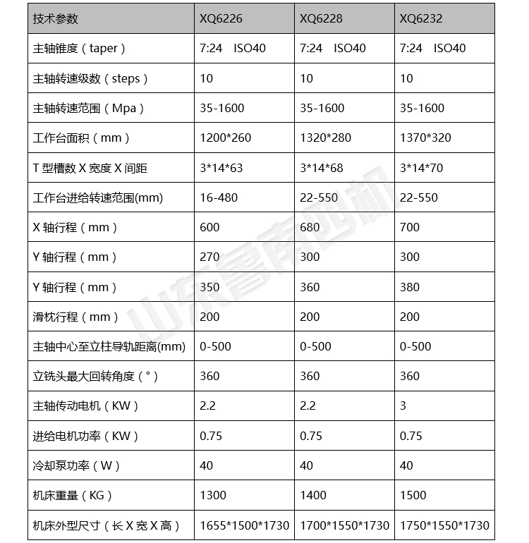 XQ6226/XQ6228/XQ6232萬能銑床是一種用途廣泛的機床,可配置分度頭和數顯光柵尺;萬能回轉頭銑床加工范圍大,可以實現一次裝夾加多工序加工,大大縮短加工時間,效率高。該系列銑床可以加工水平面、垂直面、溝槽、鍵槽、燕尾槽及各種曲面。是機械、電子、模具、汽車等行業的理想加工設備。
